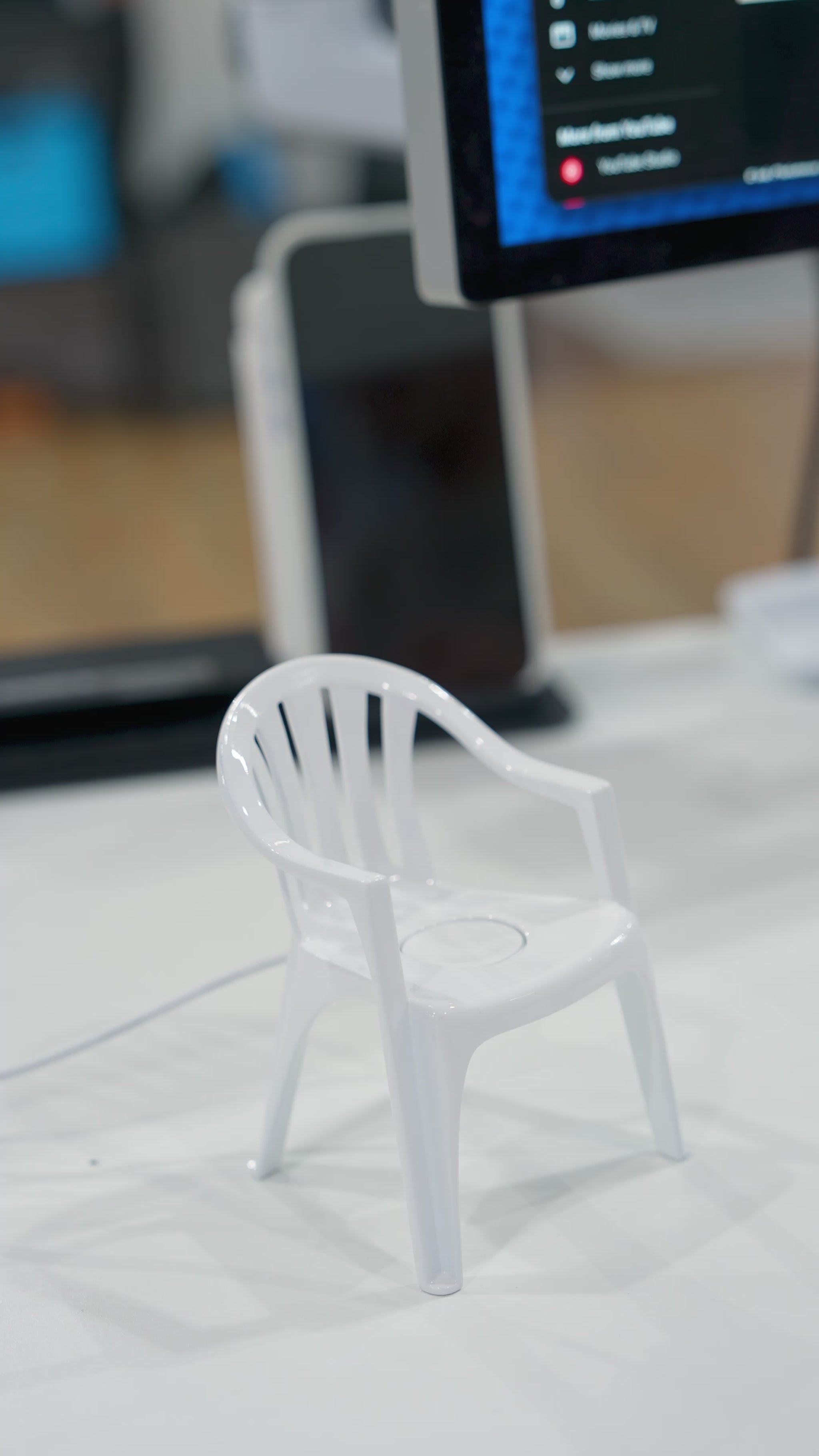 Inspired by the iconic Monobloc chair found everywhere from patios to parking lots, this piece shrinks the familiar form down to desk scale and gives it a new, very specific job. Your tech accessories snaps neatly into the seat, turning a universally overlooked object into a functional charging dock.